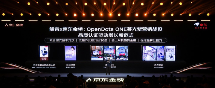 此外,京东金榜还为品牌搭建了传递品牌价值的舞台。今年9月,韶音联合京东金榜推出OpenDotsONE暮光紫配色耳夹式耳机新品,该产品凭借低频聚合技术及杜比音效支持,获得“京东金榜音质认证”,并于11月登上京东耳机趋势金榜,带动站内外商品流量环比提升超30倍。